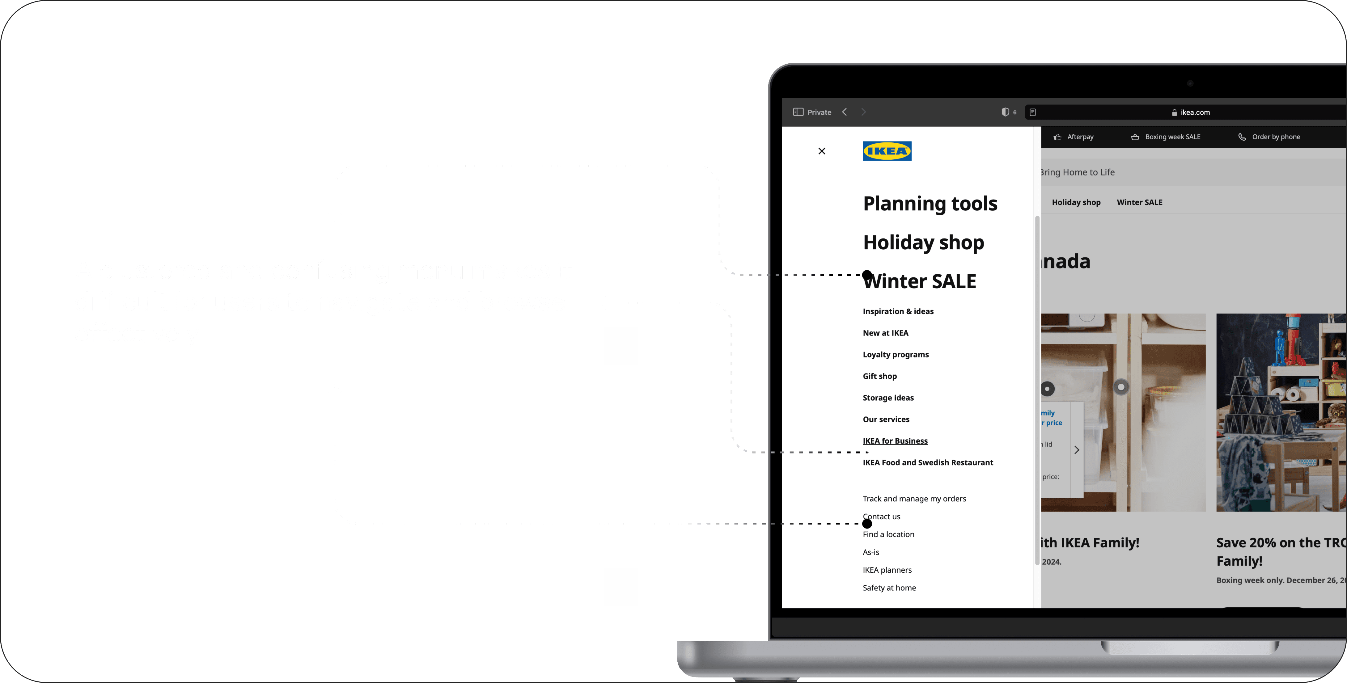 A menu with different font sizes and too many categories makes users frustrated about the overall experience.