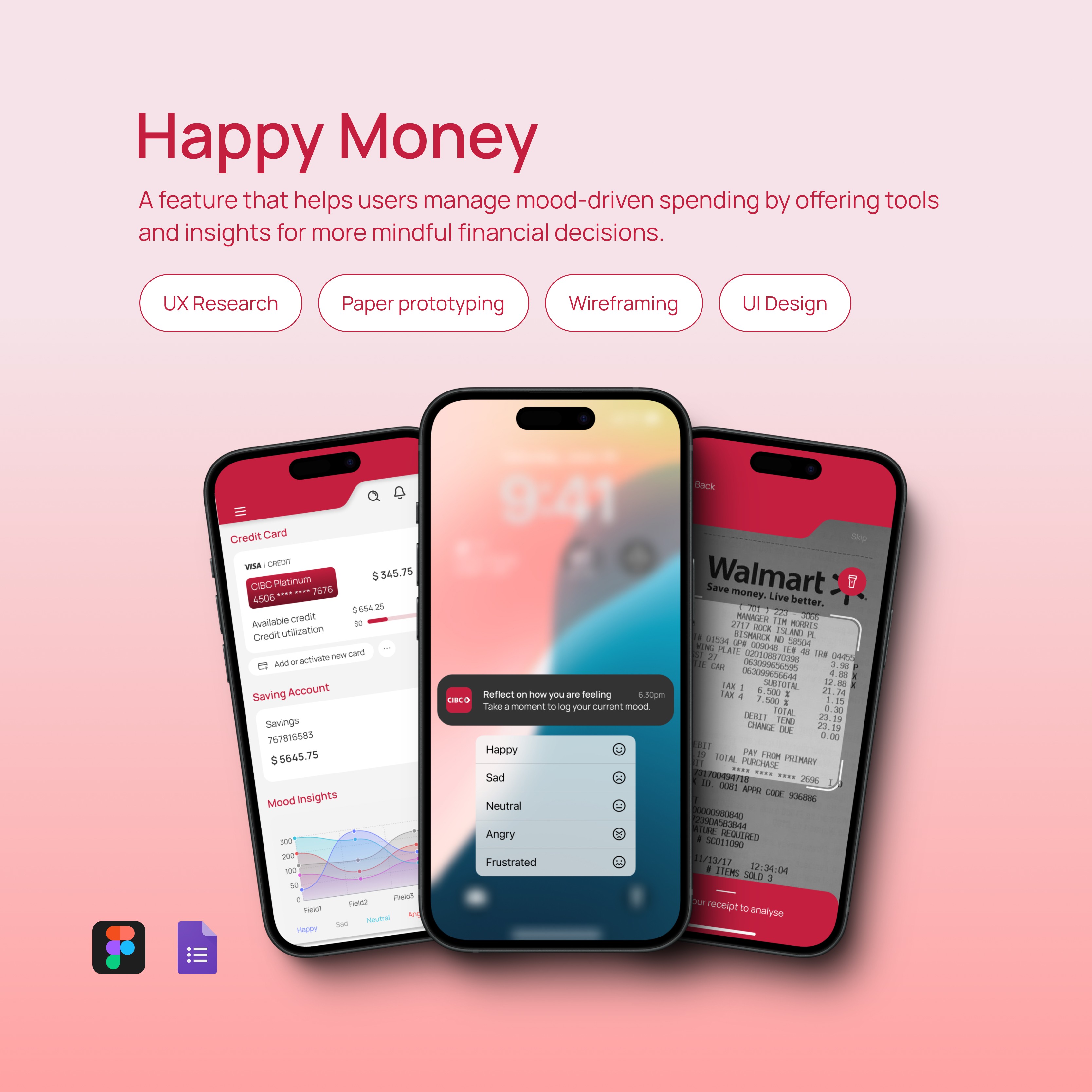 We propose a new feature called "Happy Money" for the existing CIBC app. This feature would help users manage their mood spending—how their emotions influence their spending habits—by providing tools and insights to encourage more mindful and informed financial decisions.