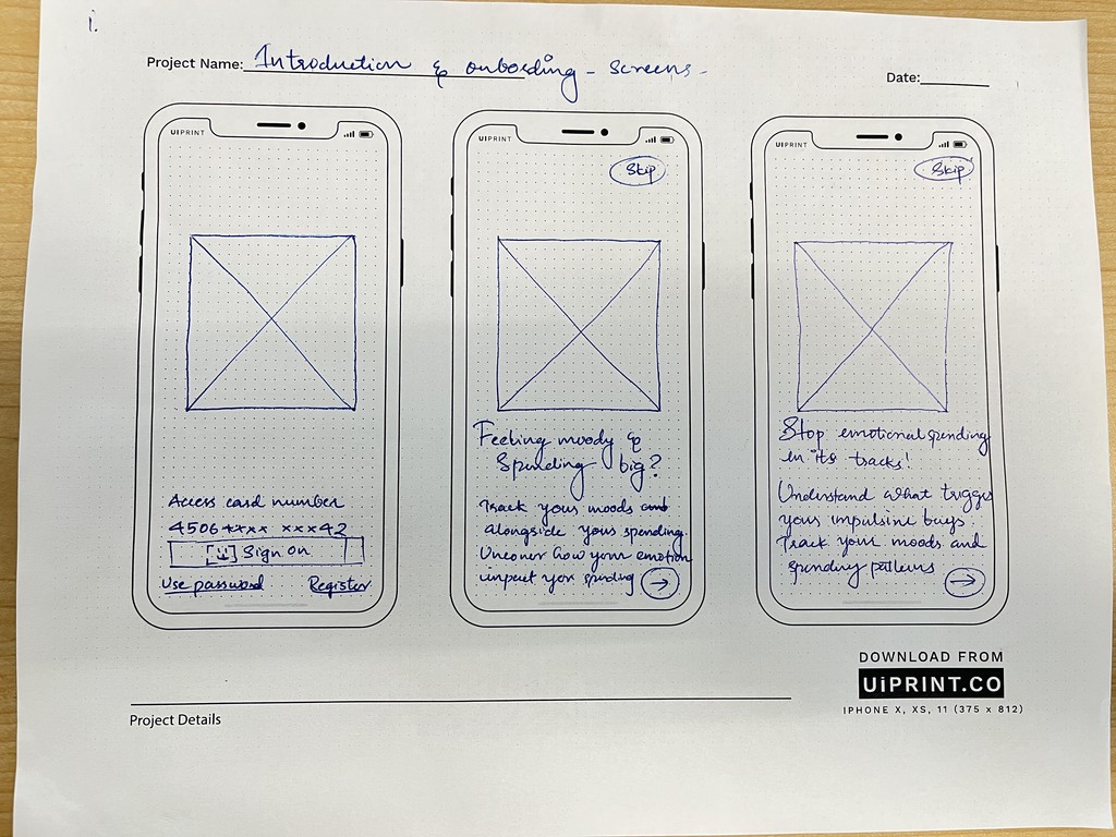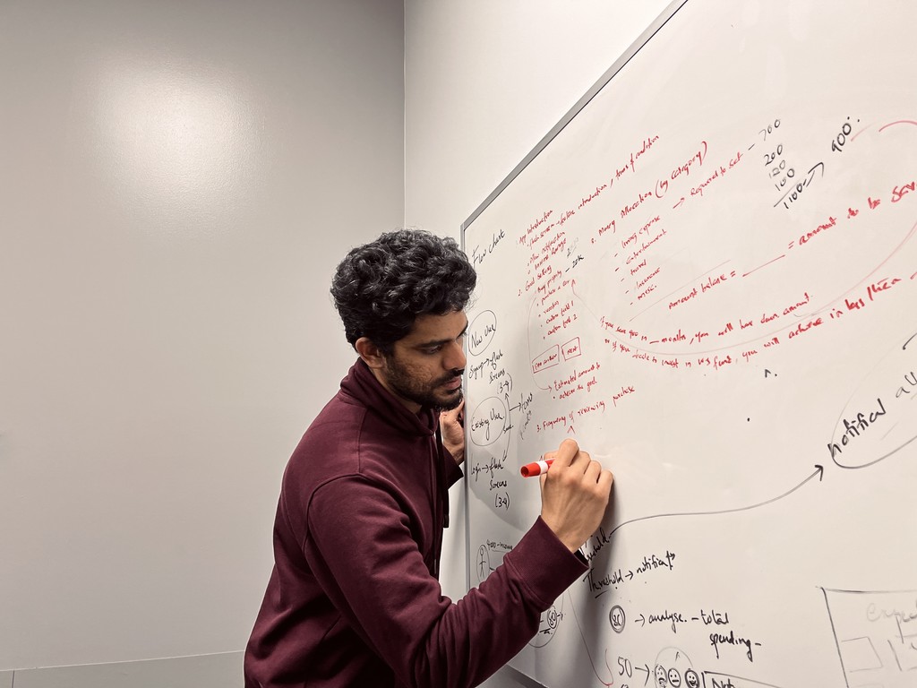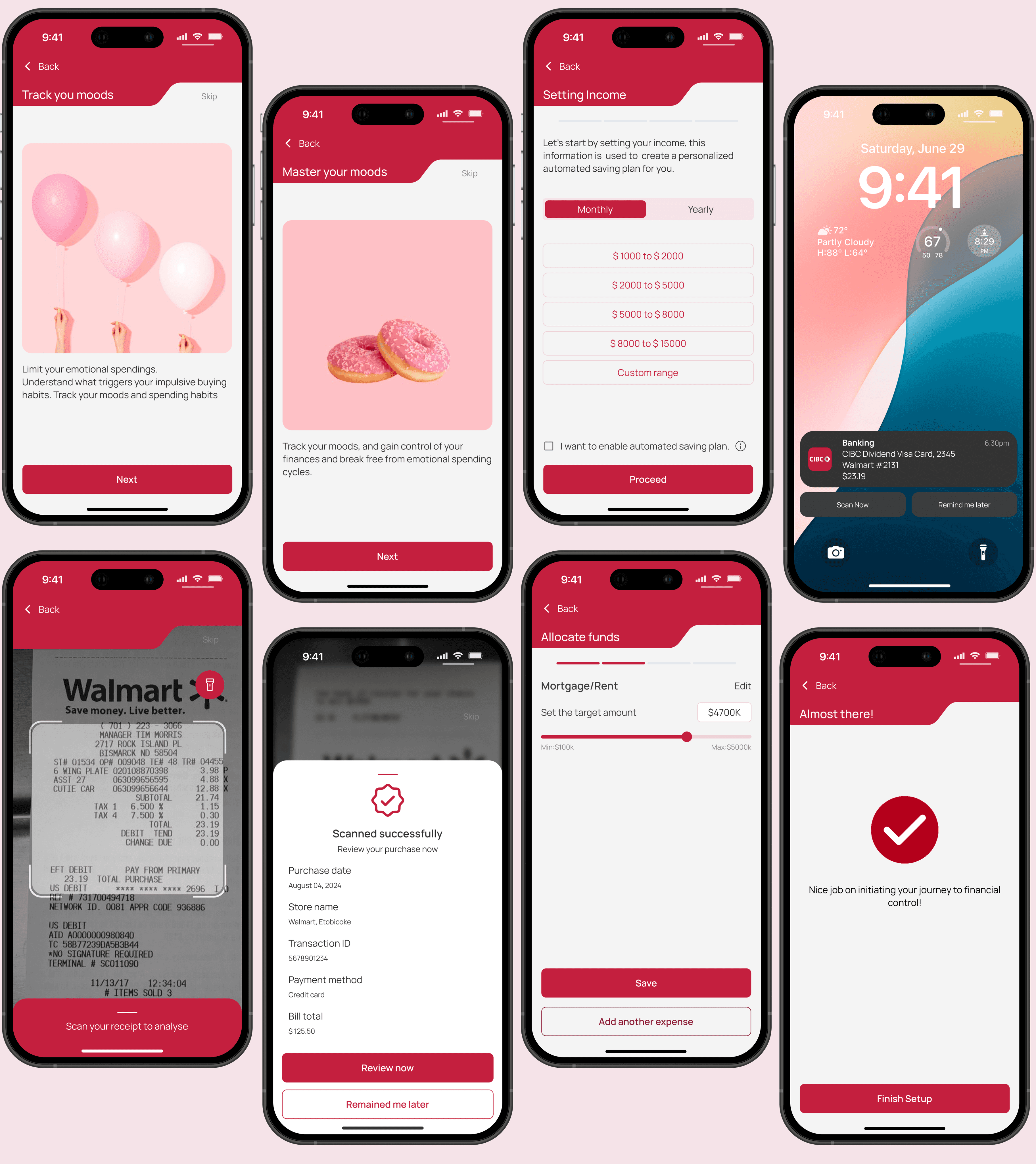 We started by listing all the key features needed for the mood spending feature in the CIBC app. We sketched out possible user flows on a whiteboard, imagining how users would navigate the app.