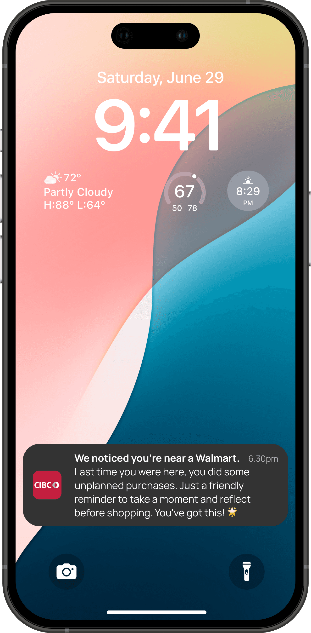 If you’re near Walmart or Costco and feeling low, we’ll send you a reminder to watch out for emotional spending.
