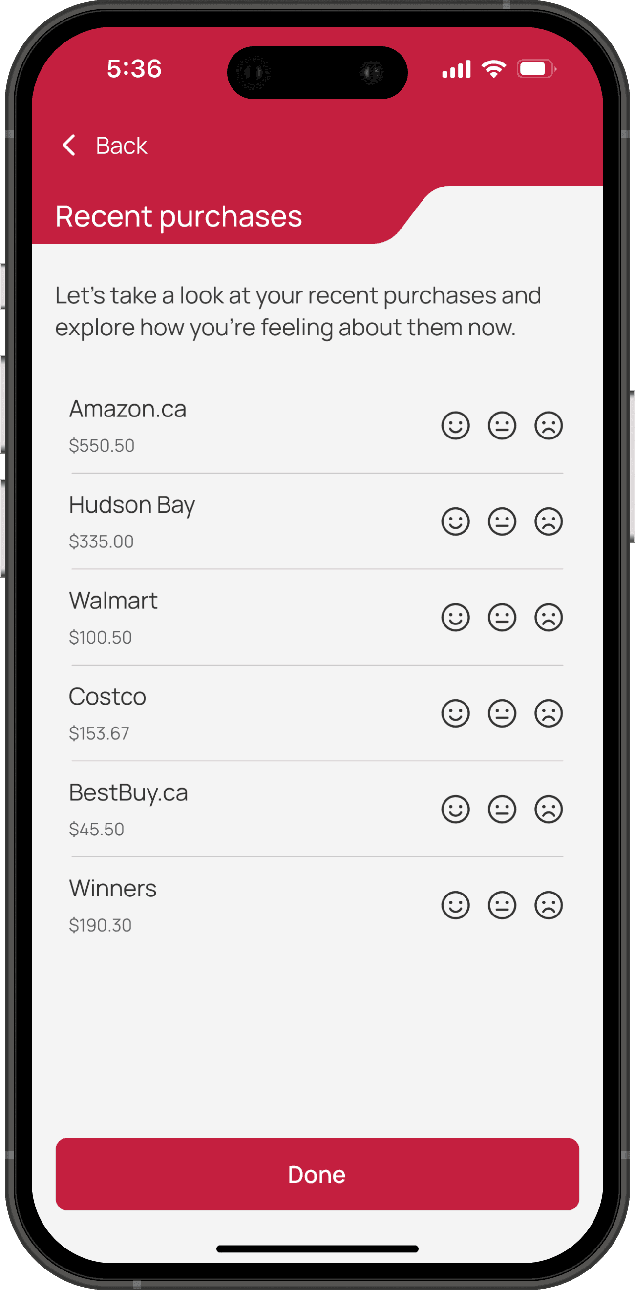 Get a personalized report on how your moods affected your spending and receive tips for smarter saving.